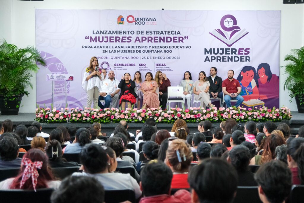 ● En el marco del Día Naranja, Mara Lezama encabezó la presentación de esta estrategia para reducir el analfabetismo y el rezago educativo en mujeres