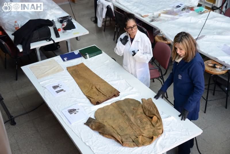 La camisa y el pantalón, retirados del sepulcro del almirante en 1998, se encuentran en proceso de restauración en las instalaciones de la ENCRyM.