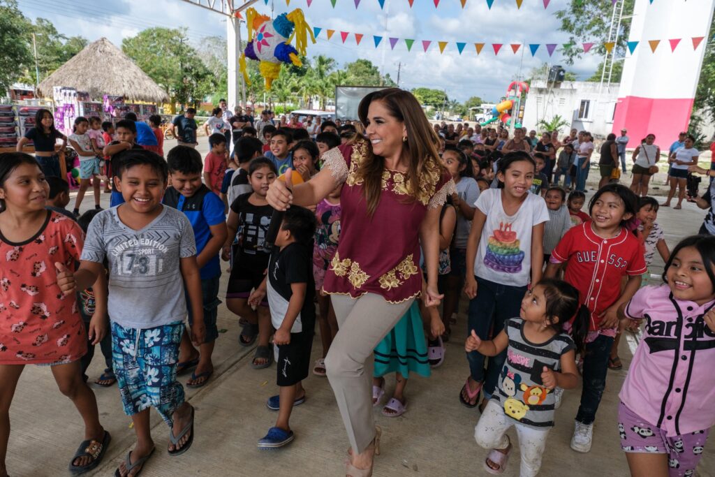 Desde este municipio, en el domo de la comunidad Agua Azul, la gobernadora Mara Lezama, envió un saludo muy afectuoso a las niñas y niños, a sus familias, de Benito Juárez, Lázaro Cárdenas, Tulum, Isla Mujeres, Puerto Morelos, Cozumel, José María Morelos, Felipe Carrillo Puerto y Bacalar, a quienes dijo que este gobierno humanista, con corazón feminista, impulsa políticas de equidad y justicia social, llevando programas sociales y atención comunitaria hasta donde no habían llegado gobiernos anteriores.